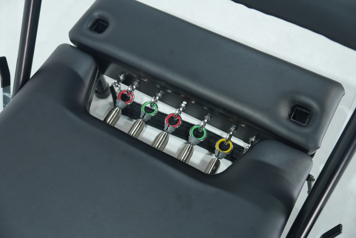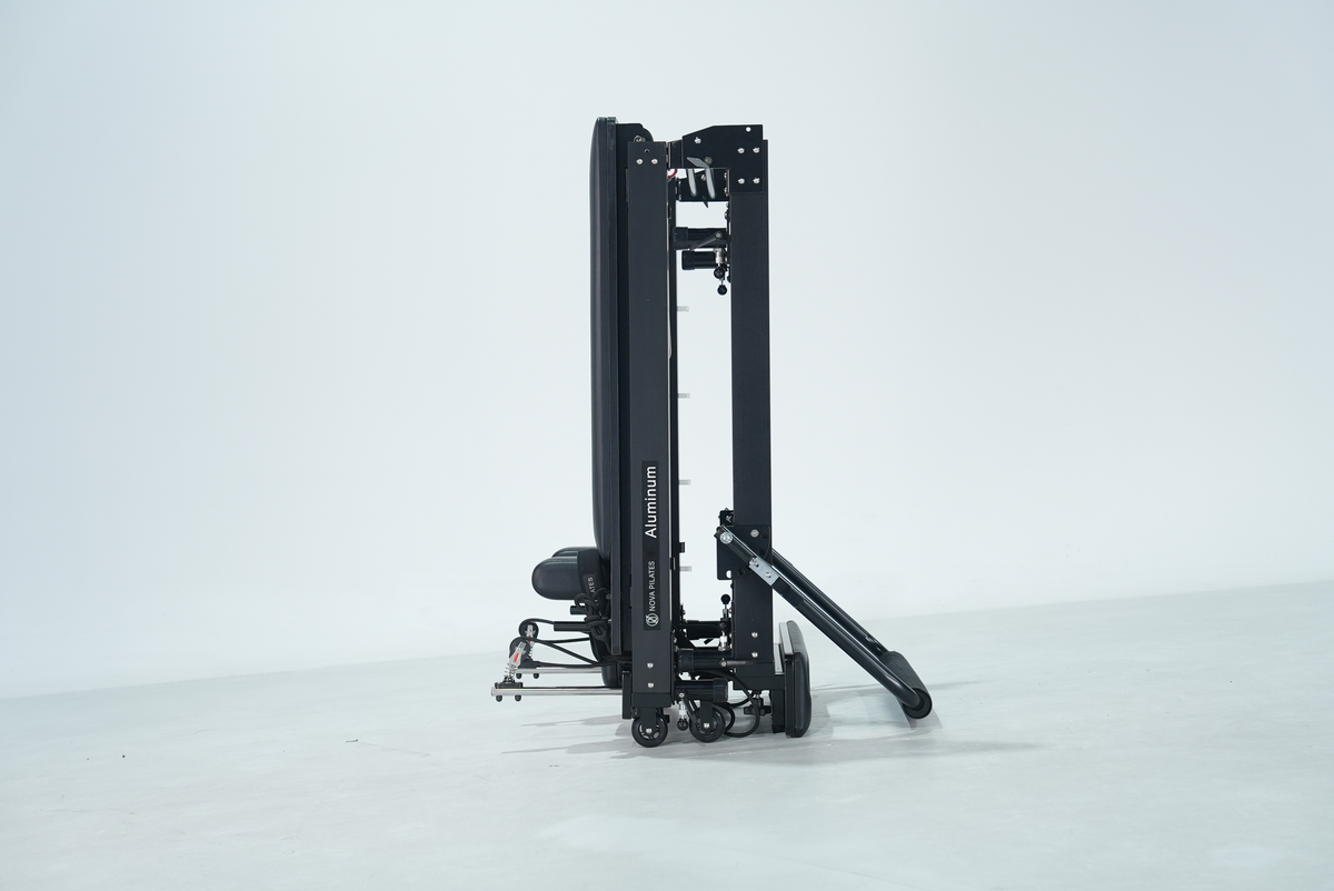 Pensé pour les petits espaces, le Reformer Pliable en aluminium allie stabilité, mobilité fluide et design professionnel.