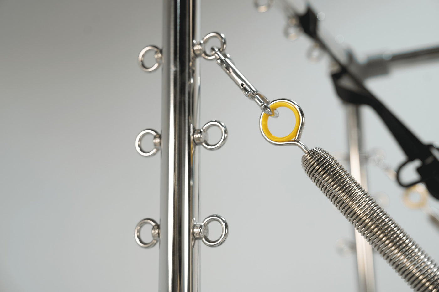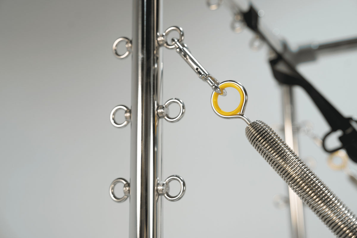 Configuration des ressorts : 8 ressorts coréens (2 jaunes courts, 2 jaunes longs, 2 verts courts, 2 verts longs)